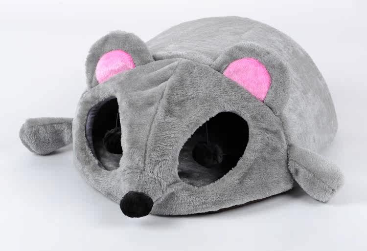 How AMAZING is our new cat bed? Your kitty is going to love you forever with this very comfortable bed. There's two entrances, each which contain a hanging pom toy for fun